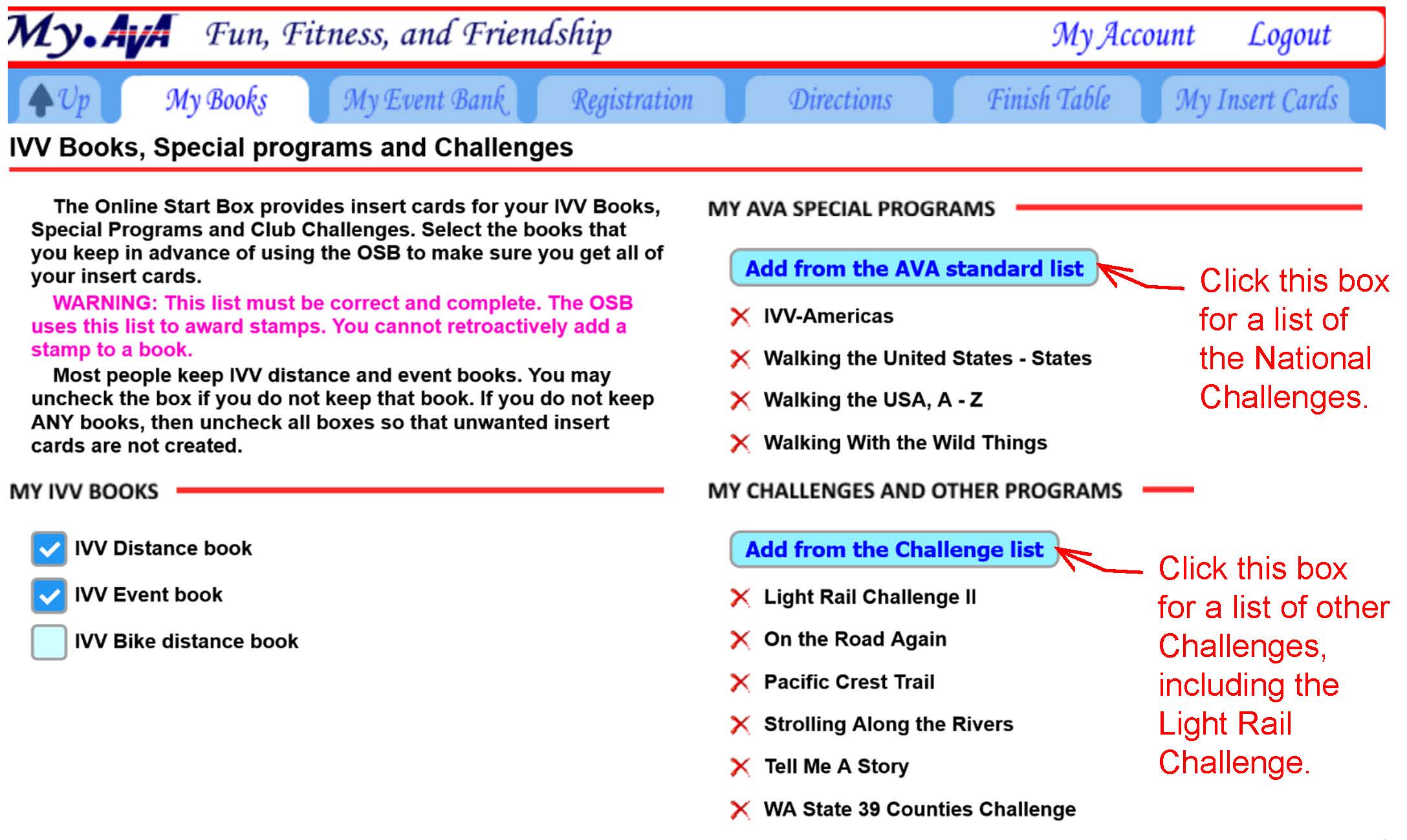 Here is a screenshot from the “My Books” page, with my notes in red pointing to the buttons to click (you’ll see that I’ve added all the WA State Challenges in my list):